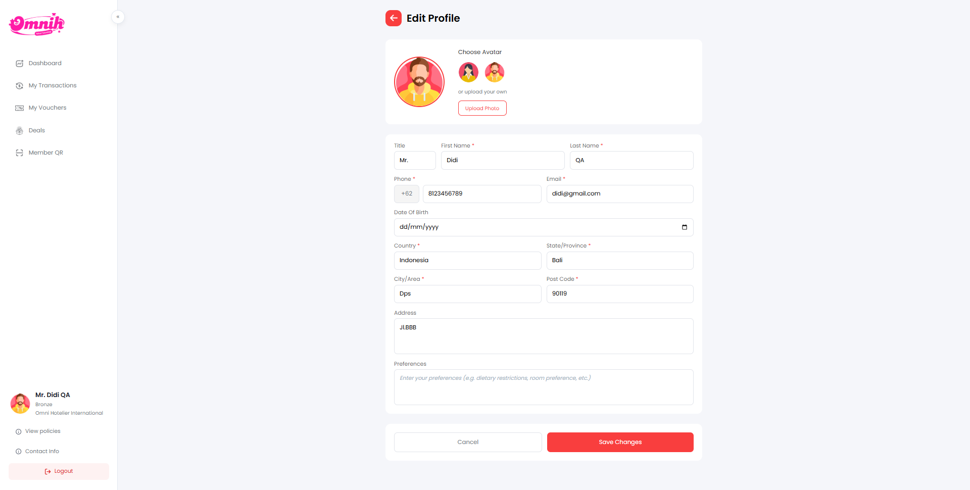 Halaman Edit User pada menu My Profile berfungsi untuk memungkinkan pengguna memperbarui atau mengedit informasi pribadi yang tersimpan dalam sistem. Informasi ini meliputi beberapa data penting yang berhubungan dengan akun keanggotaan.