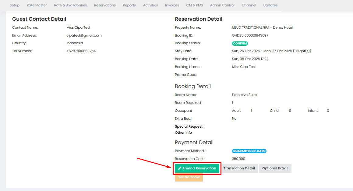 - Apabila masih muncul tombol Amend Reservation silahkan dari property bisa melakukan perubahan secara mandiri.