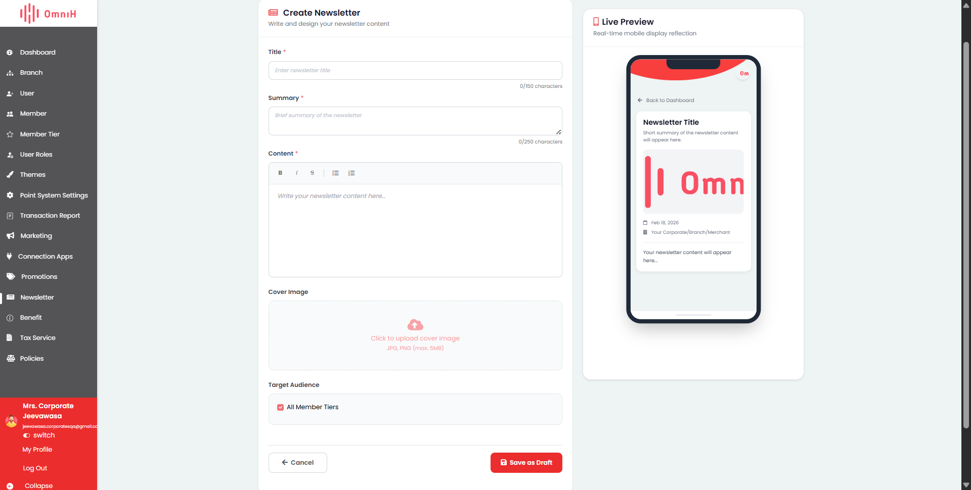- Target Audience: Pilih apakah ingin mengirim ke semua member atau tingkatan tertentu (Silver, Gold, Platinum, Diamond).