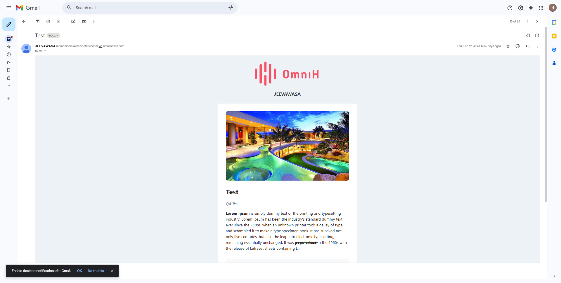 Tampilan pesan email yang akan di daoat oleh member, saat membuka pesan promosi.