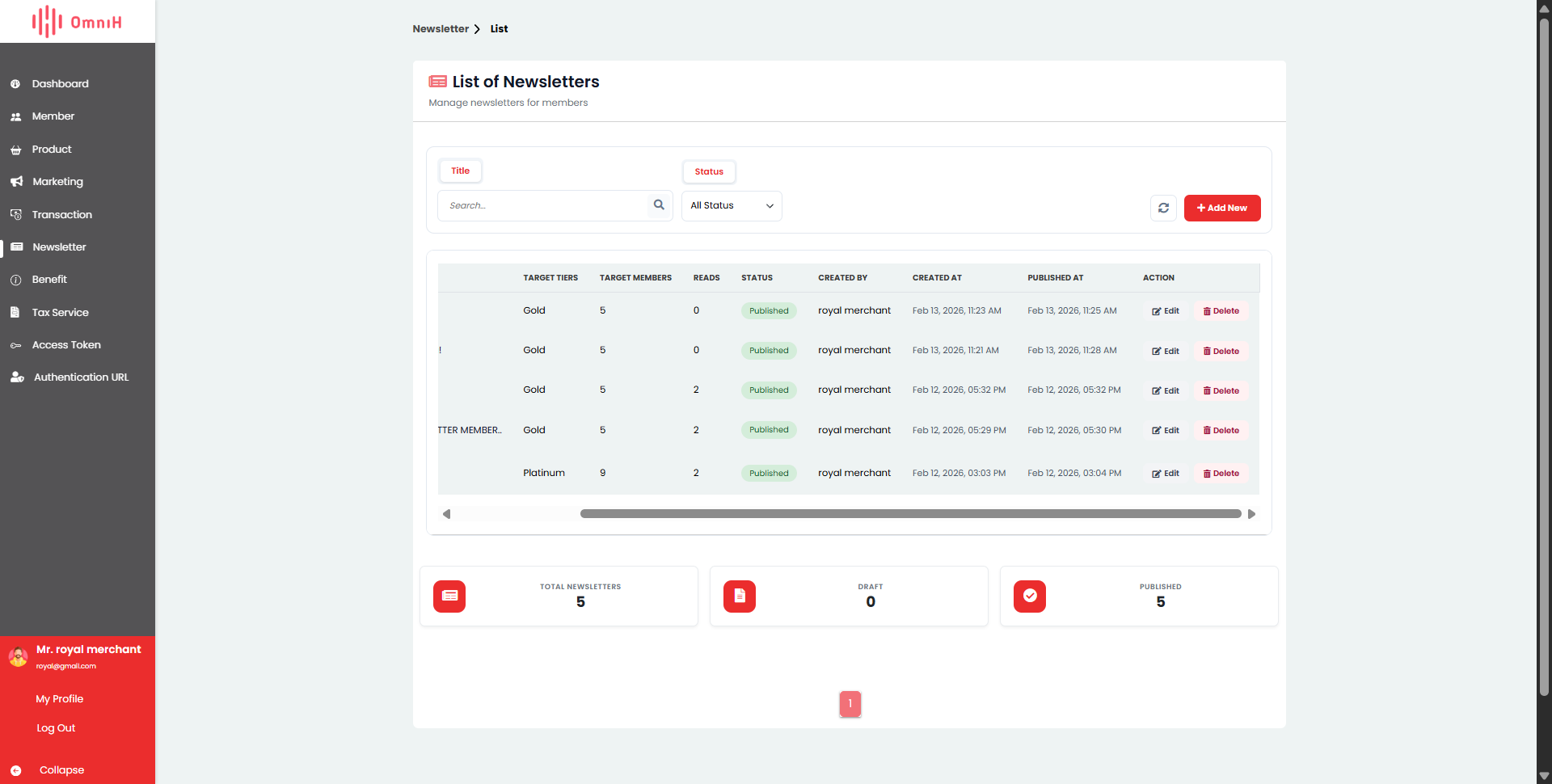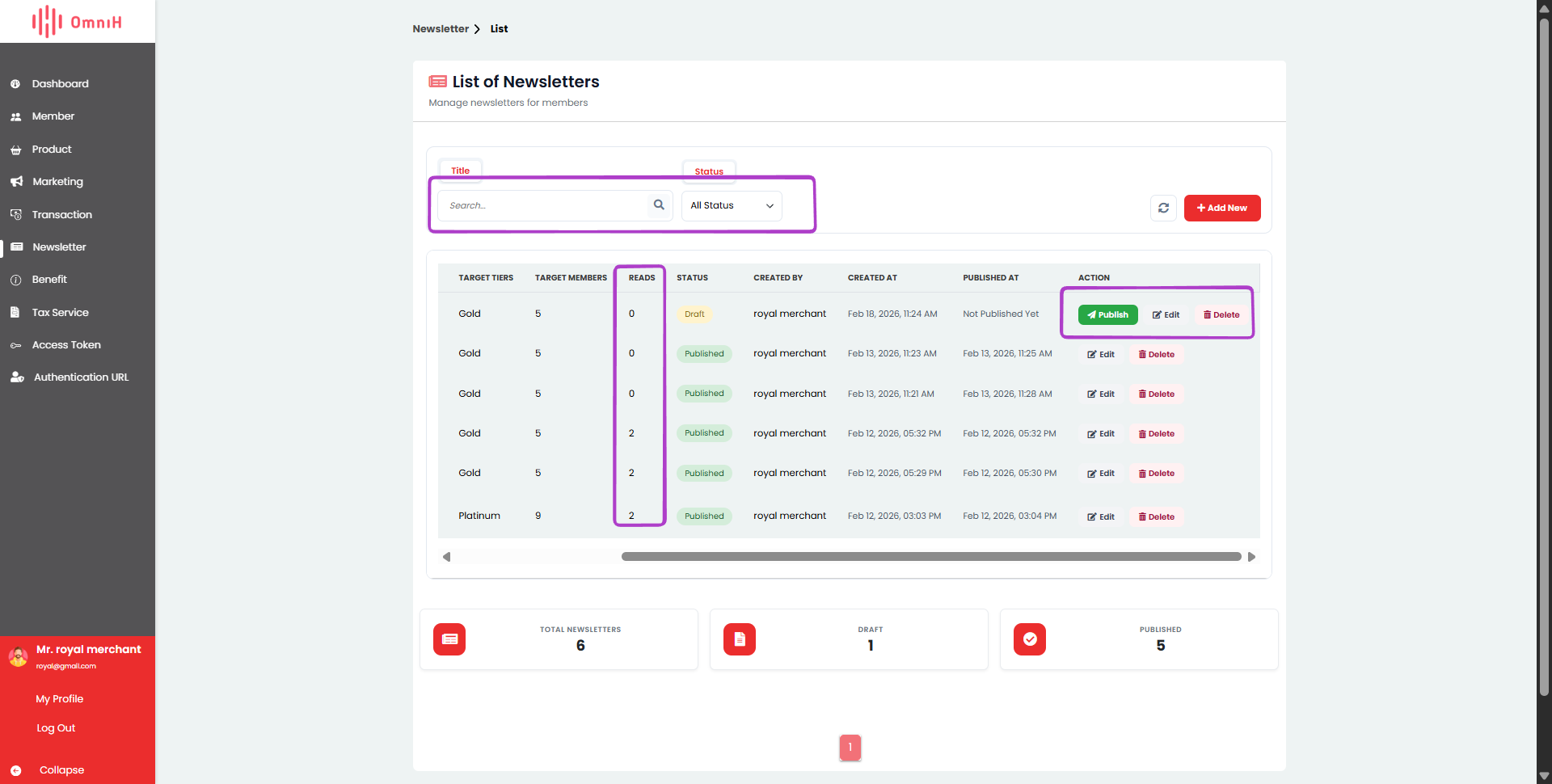 - Publish: Mengirimkan newsletter ke member.