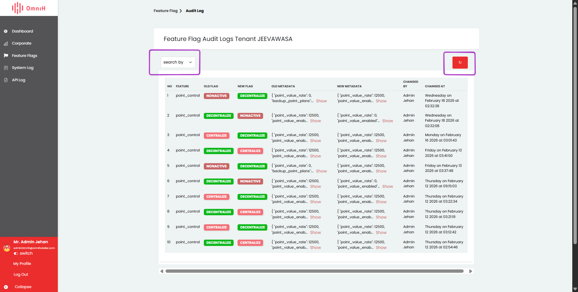 Field Target Corporate digunakan untuk memilih corporate yang akan dikenakan pengaturan fitur. Setiap perubahan konfigurasi feature flag yang dilakukan hanya akan berlaku pada corporate yang dipilih. Fungsi utama dari field ini adalah menentukan corporate tujuan konfigurasi, memastikan pengaturan fitur dapat diterapkan secara independen antar corporate dan mendukung kebutuhan konfigurasi yang berbeda pada setiap corporate.