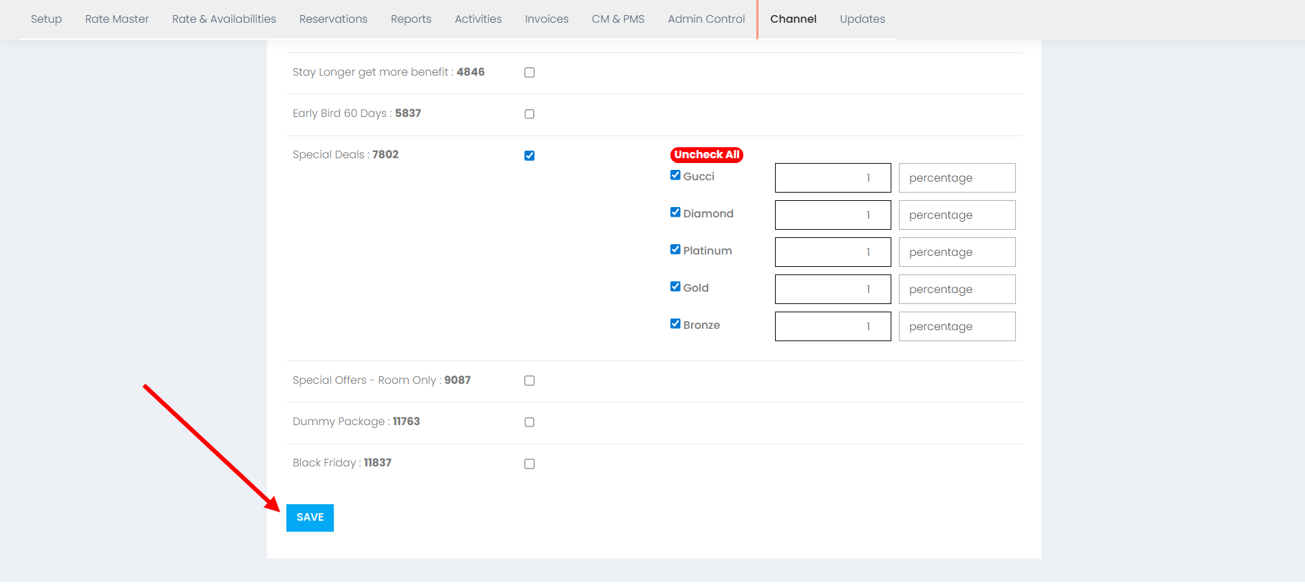 3. Kemudian Pastikan Promotion Akomodasi / Aktivitas yang ingin diberikan harga khusus untuk member sudah tercentang sesuai dengan preferensi tiap - tiap properti.